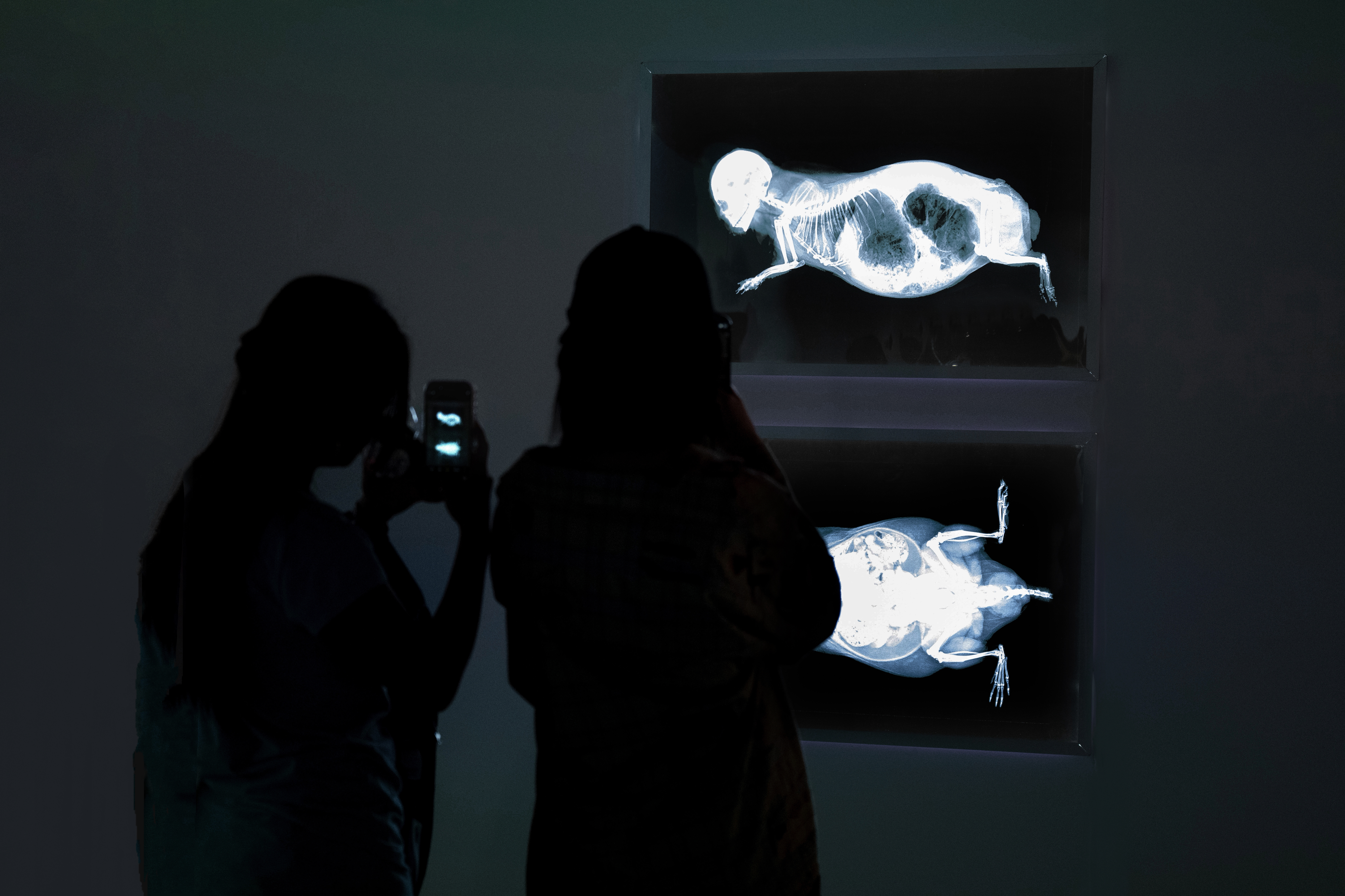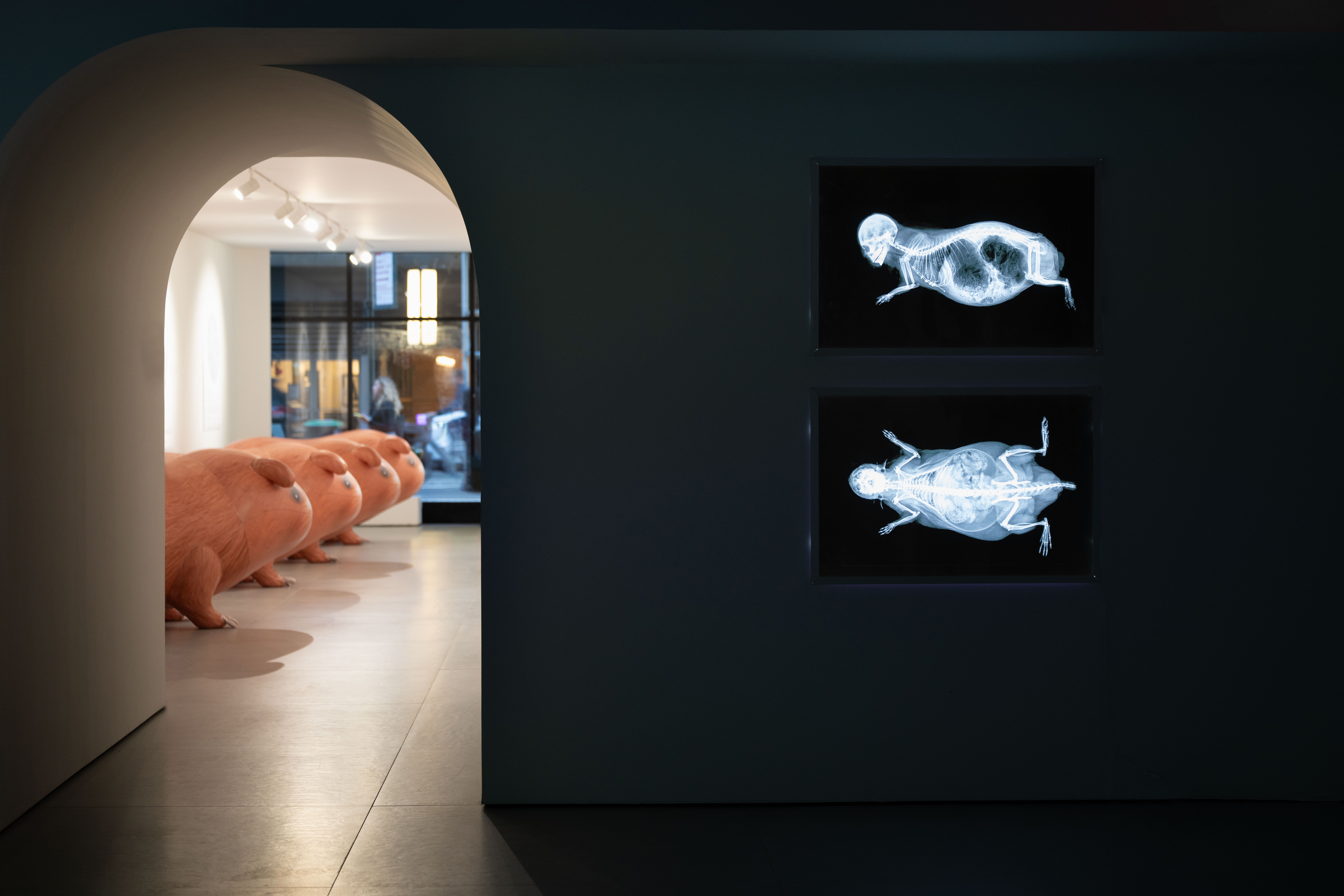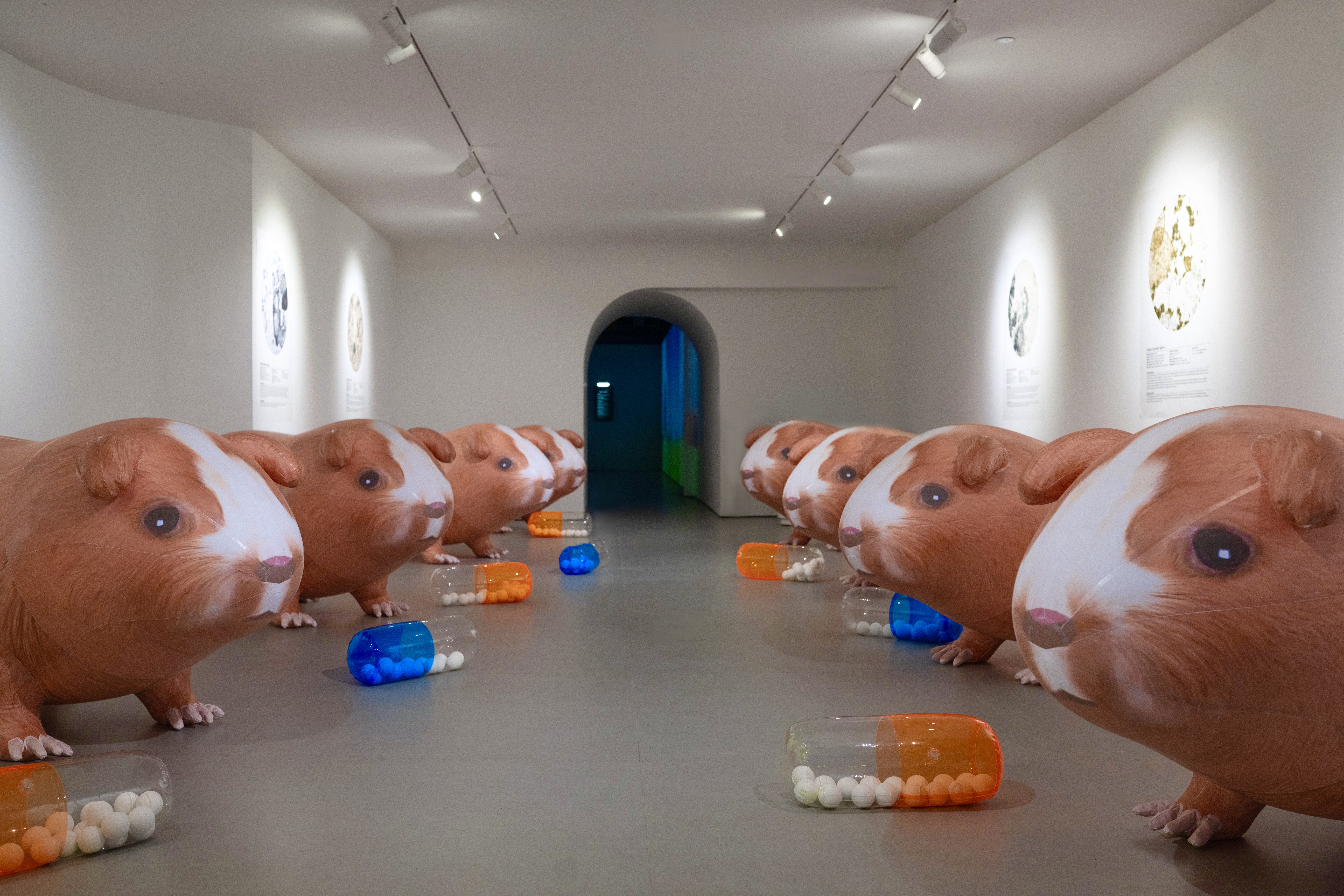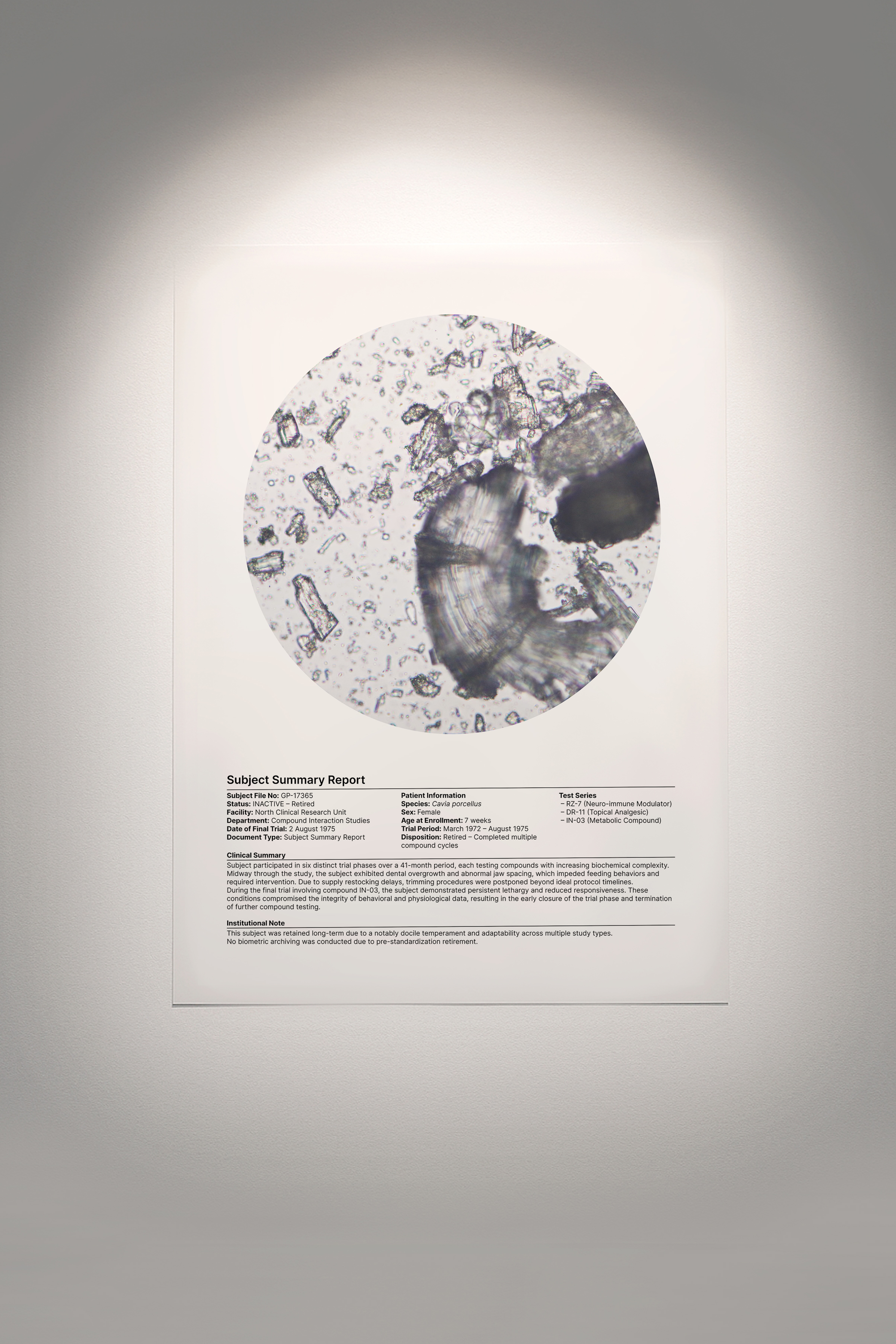 Guinea Pigs: You May Be Eligible is a multimedia exhibition that transforms visitors from observers into participants in a speculative world where the boundaries between human and animal, observer and observed, essential and inessential collapse.